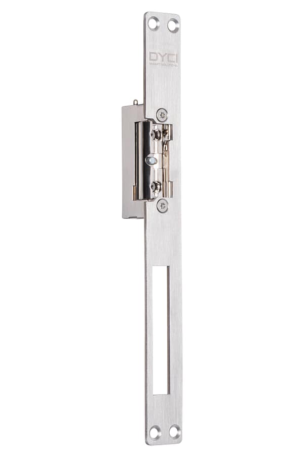 Elektrische deuropener met lange sluitplaat zowel vrijzetfunctie als schootsignalering
